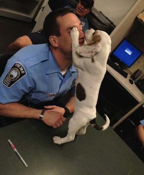 Jednému z policajtov sa trojmesačné šteniatko natoľko zapáčilo, že sa rozhodol pre jeho adopciu. Psík dostal meno Seven a vo svojom novom domove dnes žije spokojným životom. A ako je z obrázkov zrejmé, svojho nového pána oddane miluje. Ostatne láska je to obojstranná ...